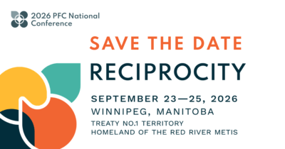 Collaboration 2026 PFC National Conference PFC’s next bi-annual National Conference will take place in Winnipeg, Manitoba, from September 23-25, 2026. Our theme is Reciprocity. It will bring foundation leaders together in a transformative space to discuss policy and research, strategic collaboration, and collective capacity building. Our friends at The Asper Foundation and The Winnipeg Foundation have agreed to collaborate with us on creating our 2026 Conference – PFC is grateful to have their partnership and local support. Our Location Winnipeg, Manitoba / Treaty no. 1 Territory / Homeland of the Red River Métis Winnipeg, Manitoba is located within Treaty No. 1 Territory, the traditional lands of the Anishinabe (Ojibway), Ininew (Cree), Oji-Cree, Dene, and Dakota, and is the Birthplace of the Métis Nation and the Heart of the Métis Nation Homeland. Our Theme Reciprocity We have chosen the theme of Reciprocity in philanthropy as a cornerstone of fostering care, support, and trust within the philanthropic and charitable ecosystem. Among our objectives is to create space and conditions to build meaningful relationships while encouraging collaboration and a sense of shared agency within the evolving needs of the sector to encourage deeper trust and lasting impact. Save the Date Add to your calendar Please mark the dates in your schedules by clicking on the appropriate calendar. Office 365 | Outlook | Google Past conferences Conference Together 25 Ensemble – PFC’s 25th Anniversary Conference Conference PFC Conference 2022: Let’s Reconnect Conference Fast Forward: Harnessing the power of philanthropy to build a better tomorrow Conference Philanthropy and the Common Good: Renewing our Practices, Strengthening our Impact Conference Connect Create Change